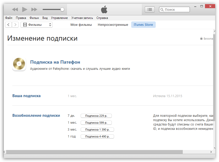 Когда вы возобновите подписку, с указанного вами счёта будут списаны необходимые средства, а подписка будет отображаться в списке активных до тех пор, вы снова не отмените её.