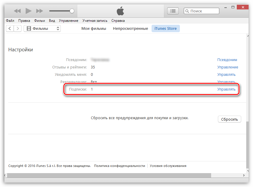 Последний шаг – нажать на «Подписки» и выбрать «Управлять»;