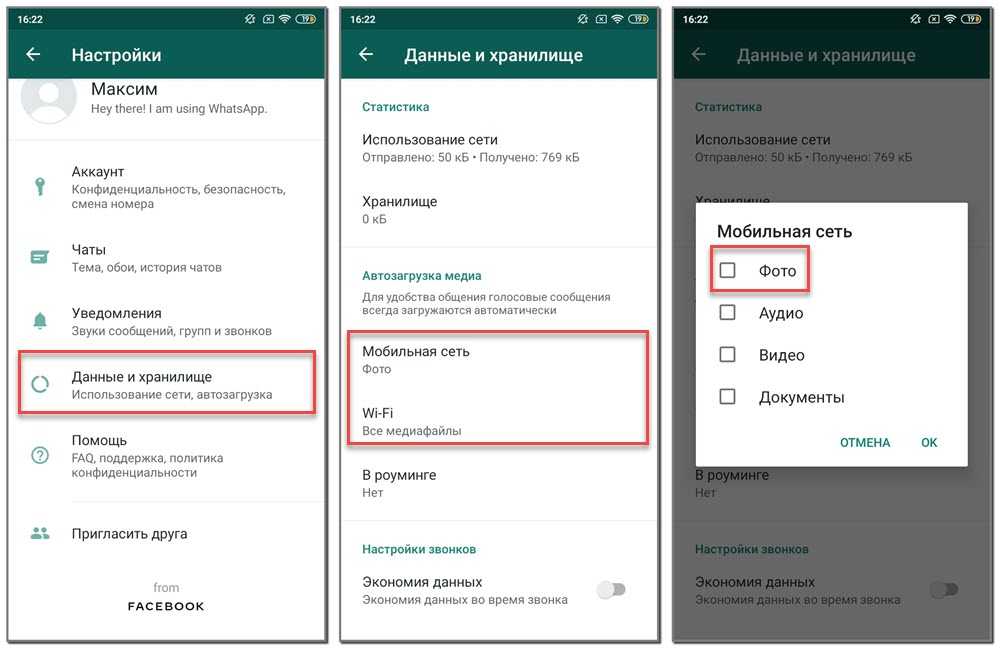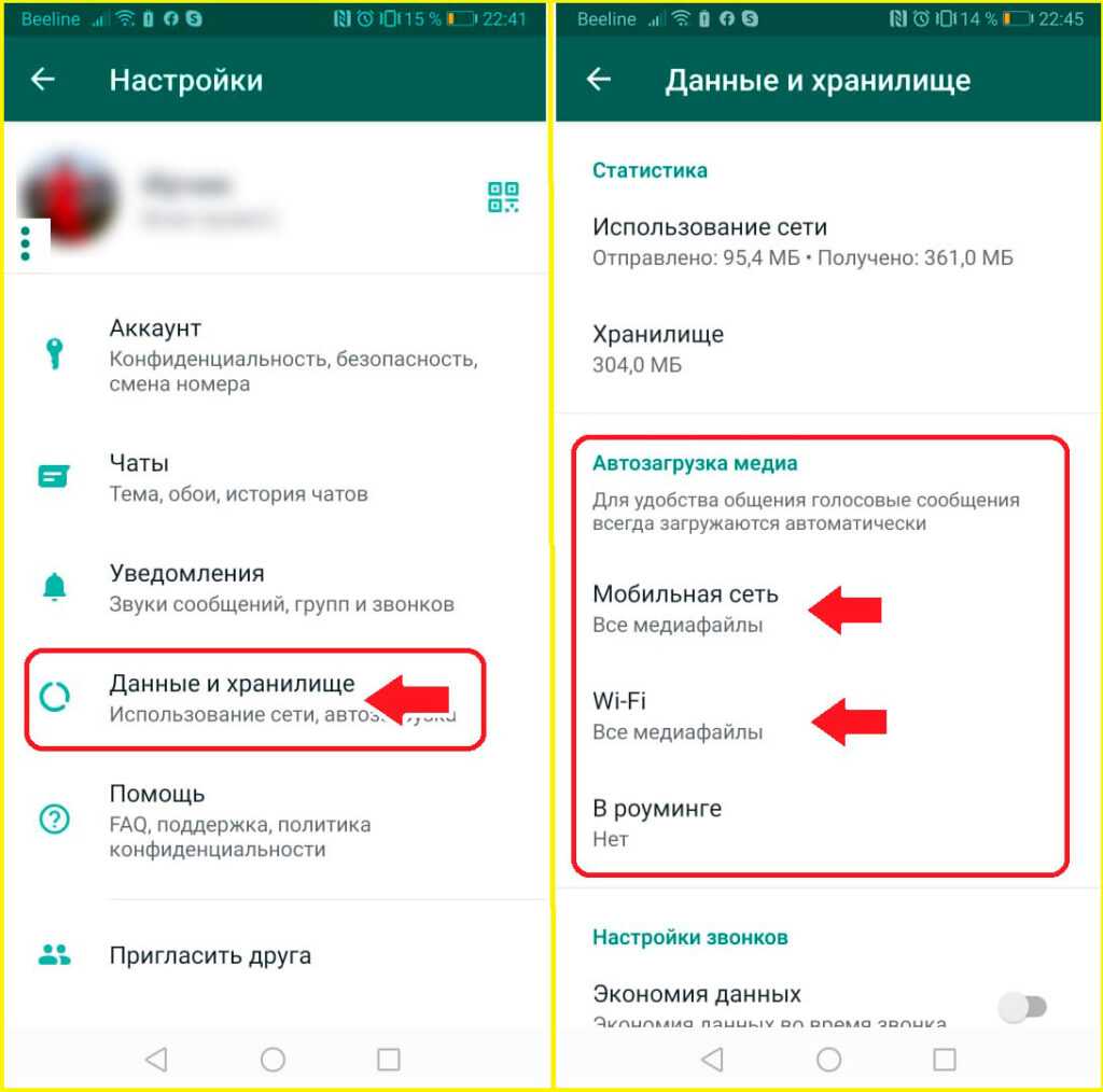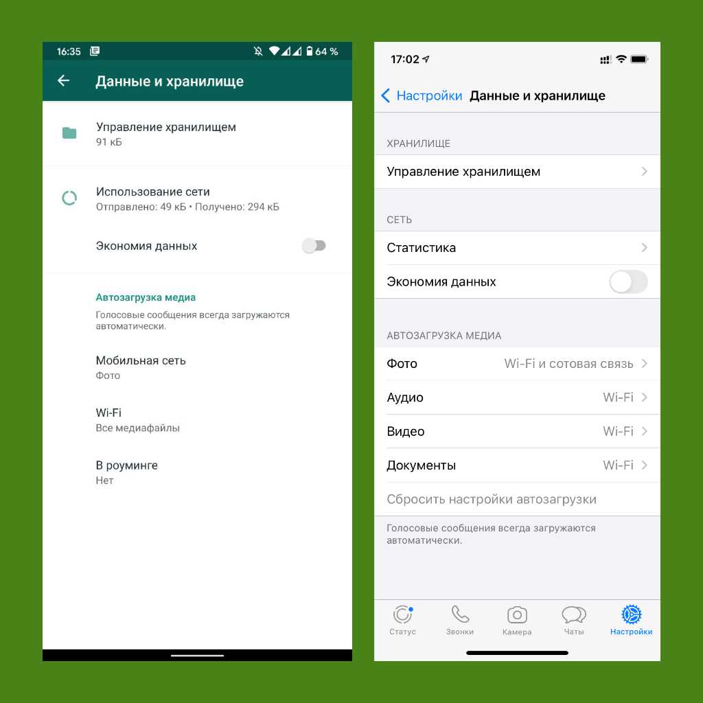 Вы можете настроить автозагрузку, перейдя в WhatsApp > Настройки > Данные и хранилище. Здесь вы можете выбрать, когда WhatsApp будет автоматически загружать фото, аудио, видео и документы.