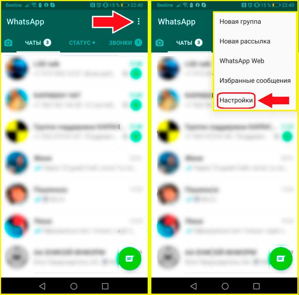 Зайдите в WhatsApp, в правом верхнем углу нажмите на многоточие