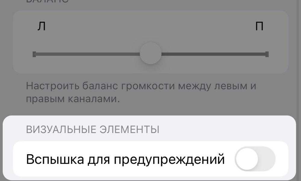 В iOS 12 и в более ранних версиях аналогичный тумблер размещен в специальном разделе с названием «Вспышка для предупреждений».