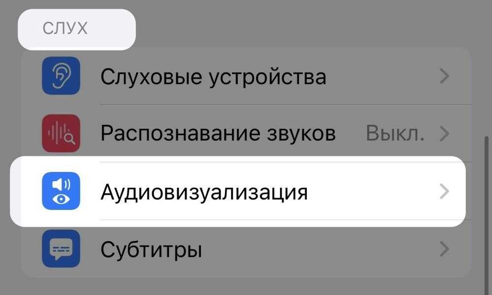 - Пролистываем открывшийся раздел по пункта «Слух».