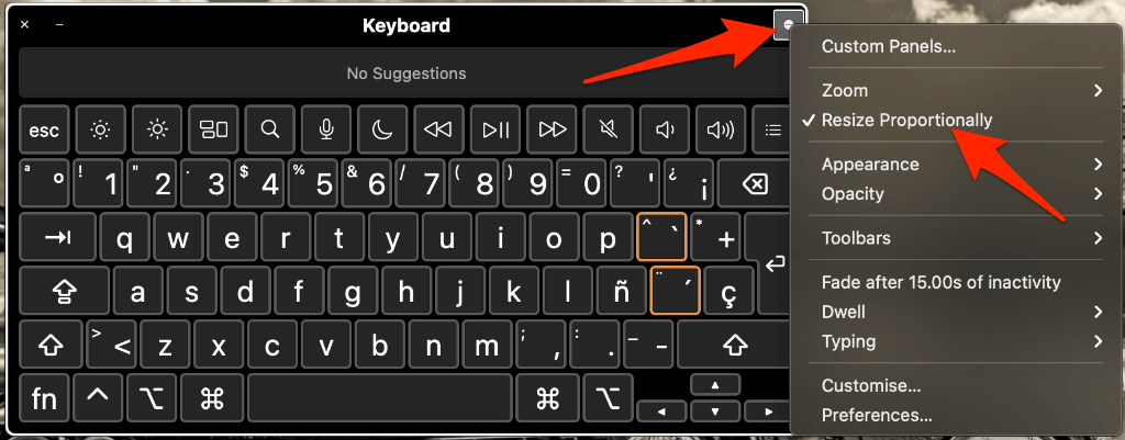 - You can drag a corner of the on-screen keyboard to make it bigger or smaller. You can also select the Panel Options and uncheck the box next to Resize Proportionally to resize the keyboard without keeping proportions.