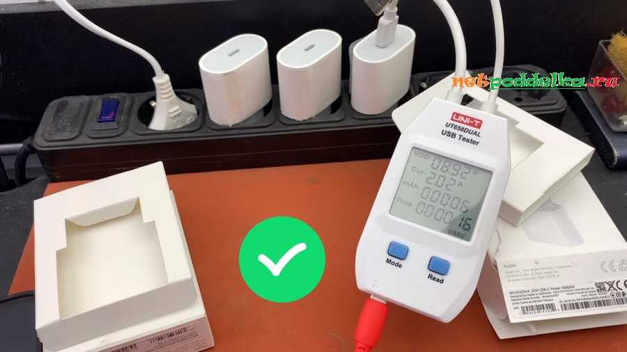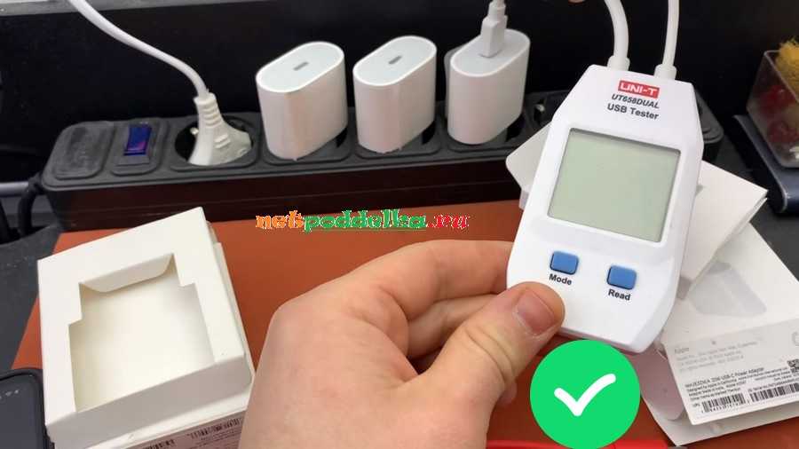 Использование тестера также поможет в том как отличить оригинал зарядки Айфона от подделки. Для начала необходимо подключить измерительное устройство к ЗУ без нагрузки. Реплика сразу подаст напряжение, которое и отобразит тестер.