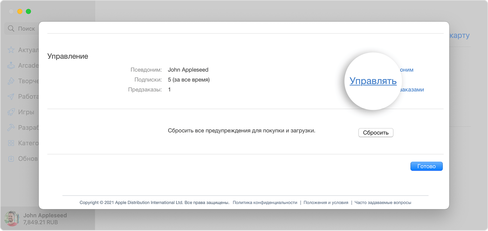 Чтобы отменить Apple Arcade на Mac: