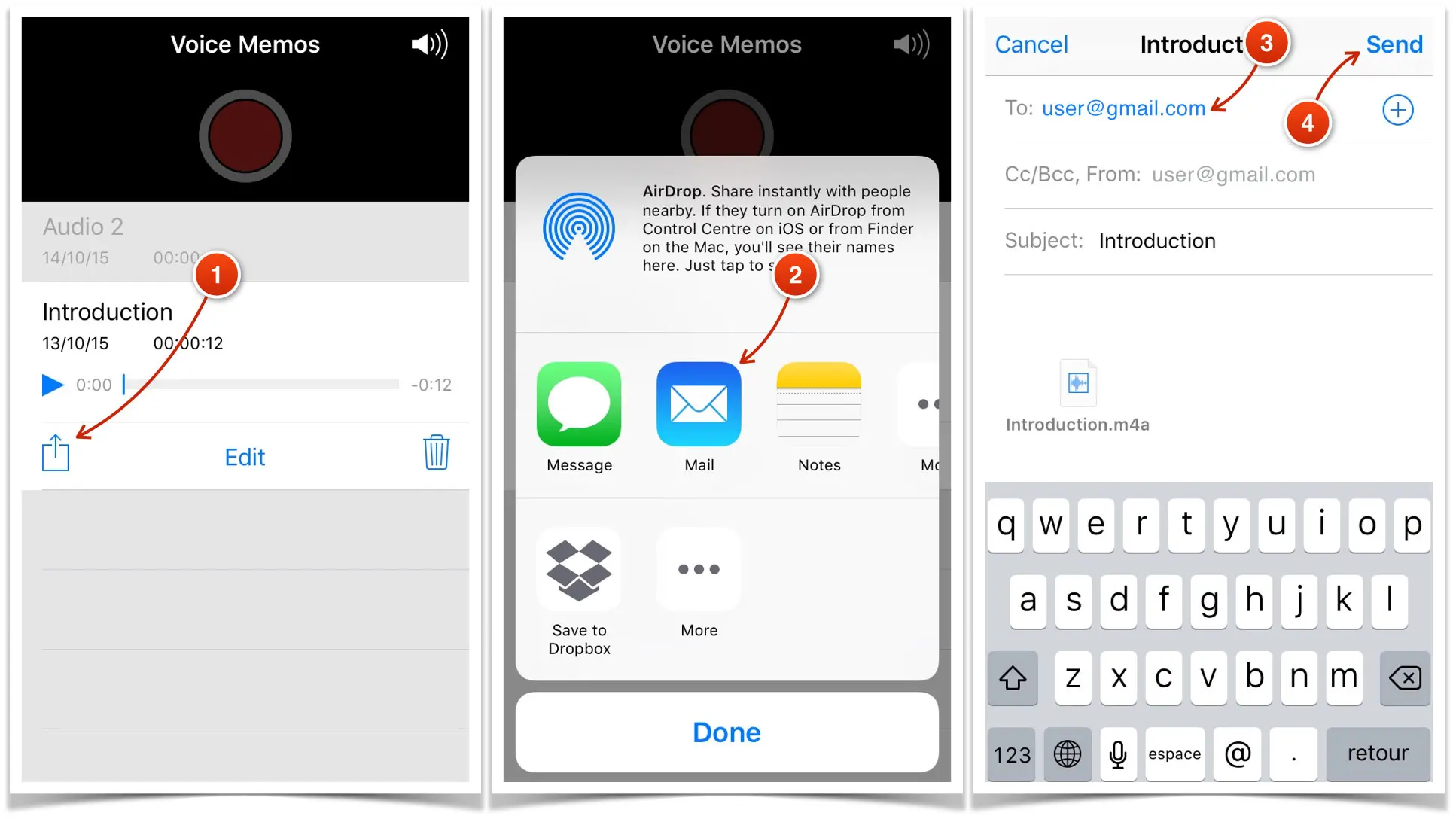 Как я могу отправить диктофонную запись с Айфона по электронной почте?