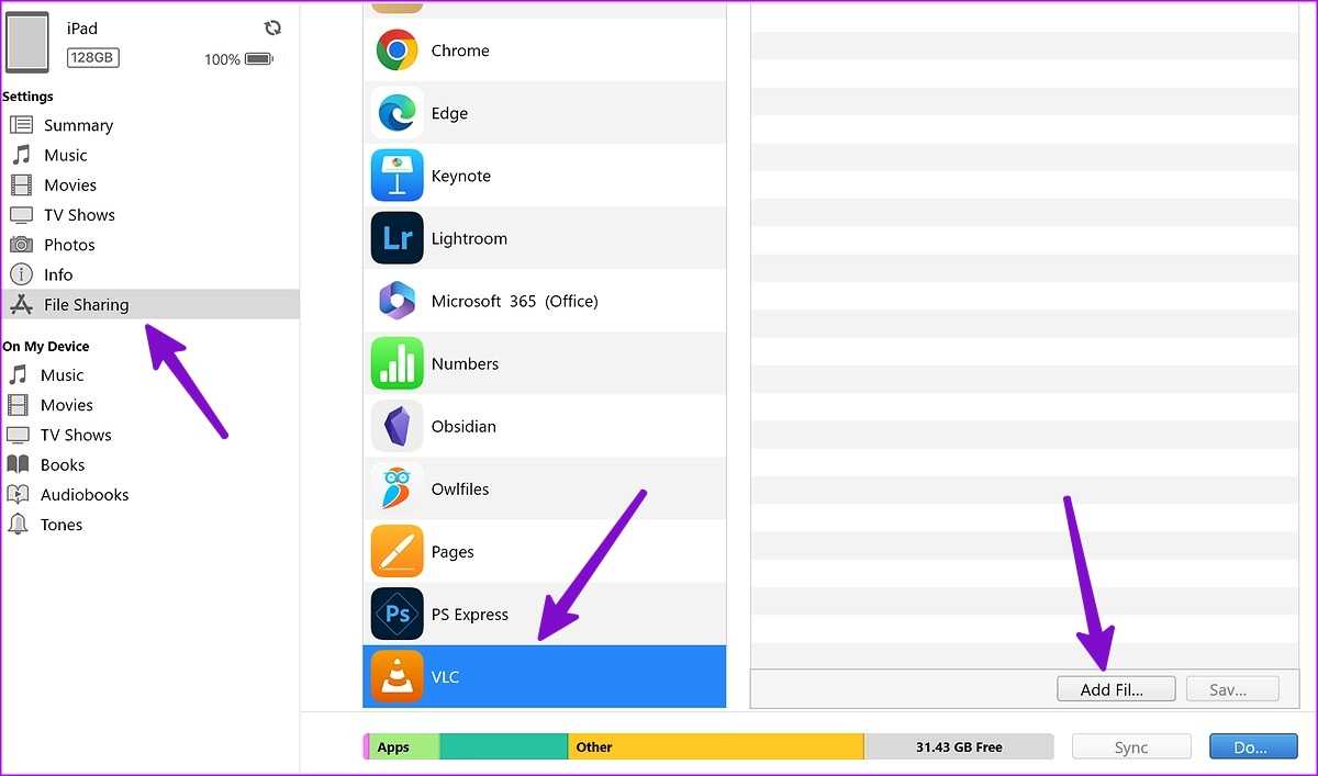 Используйте iTunes для передачи файлов с ПК на iPad