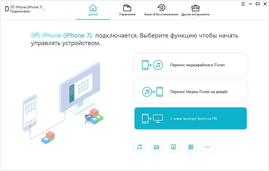 1. Скачайте программу Tenorshare iCareFone с официального сайта на свой компьютер, затем установите ее и запустите. Подключите старый iPhone к ПК с помощью USB провода.