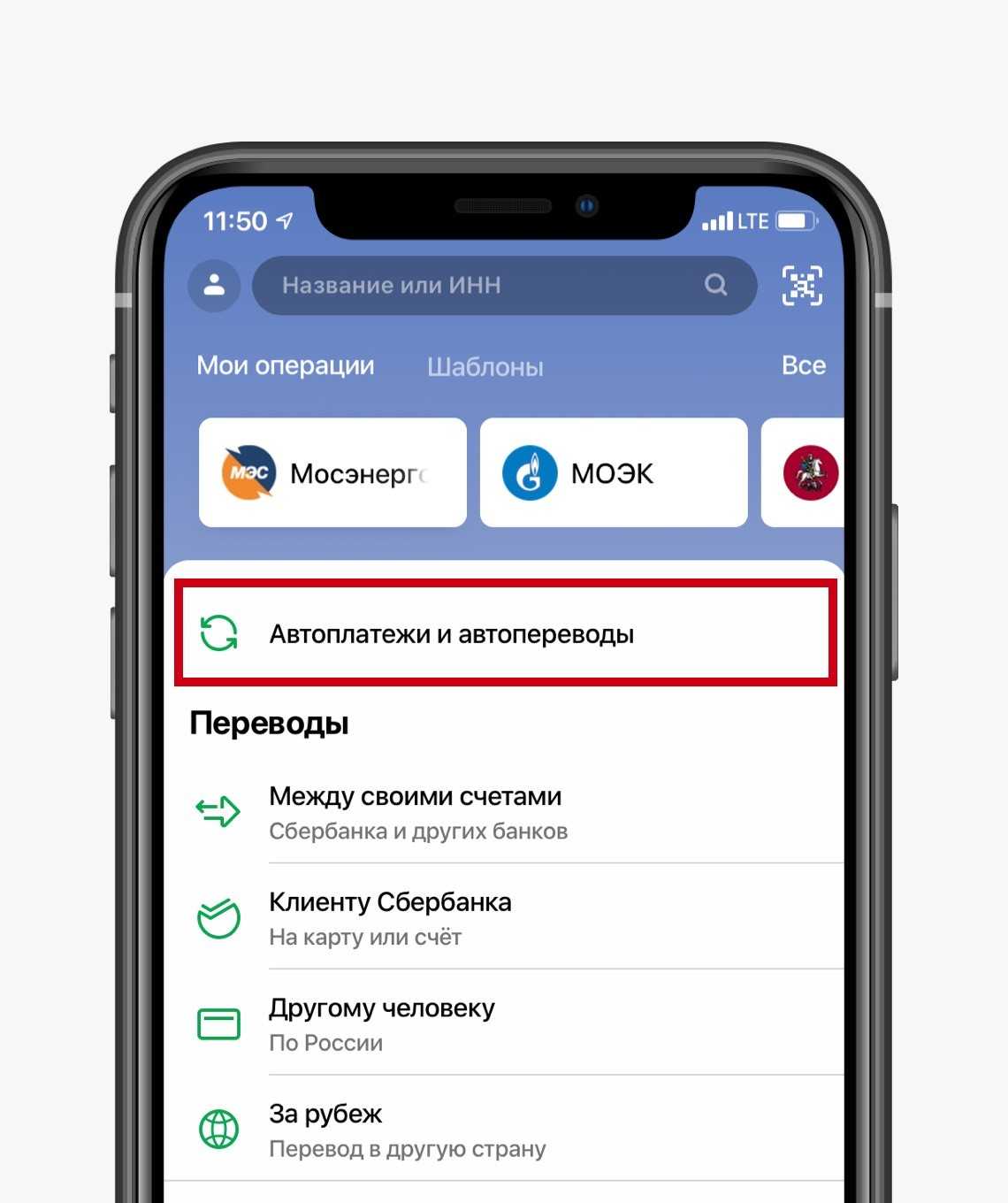 В приложении Сбербанк Онлайн все автоплатежи создаются в специальном разделе, расположенном в правом меню. Порядок действий таков: