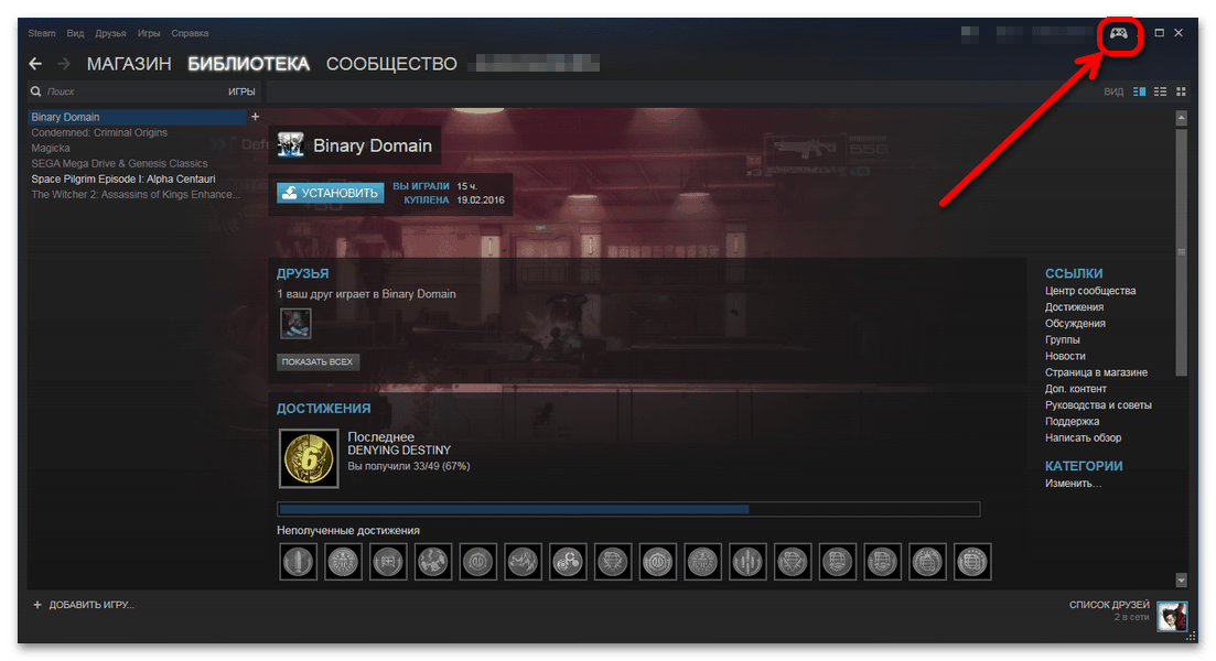 - С подключённым к ПК контроллером заходим на свой аккаунт Steam.