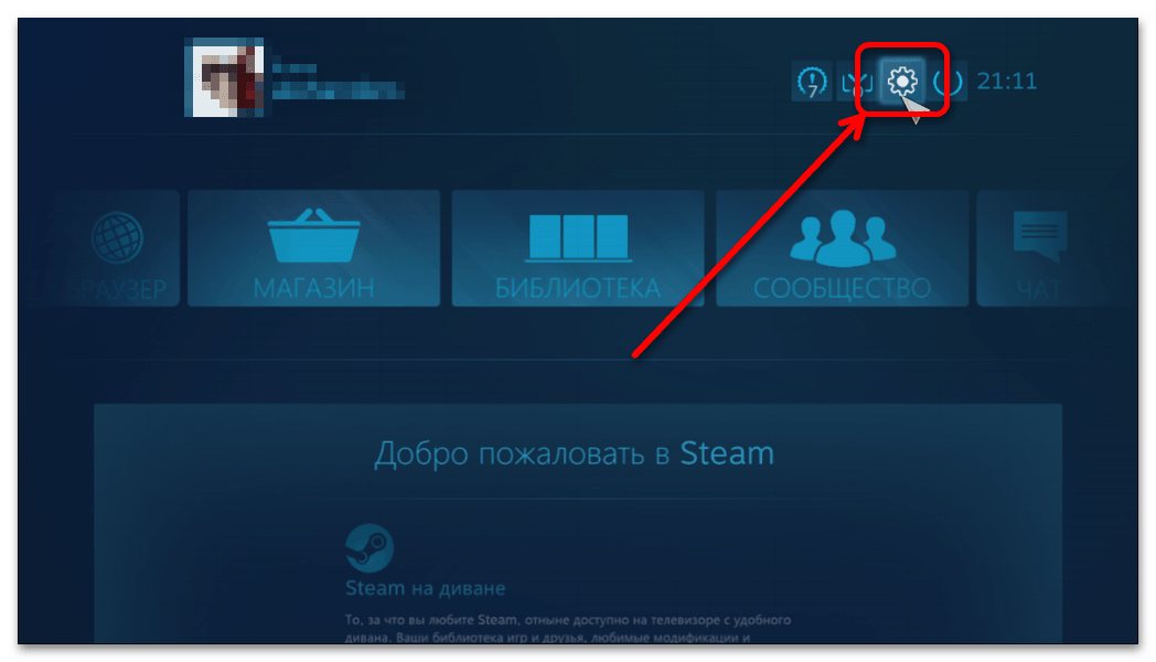 - Когда откроется режим Big Picture Mode, войдите в настройки этого режима.