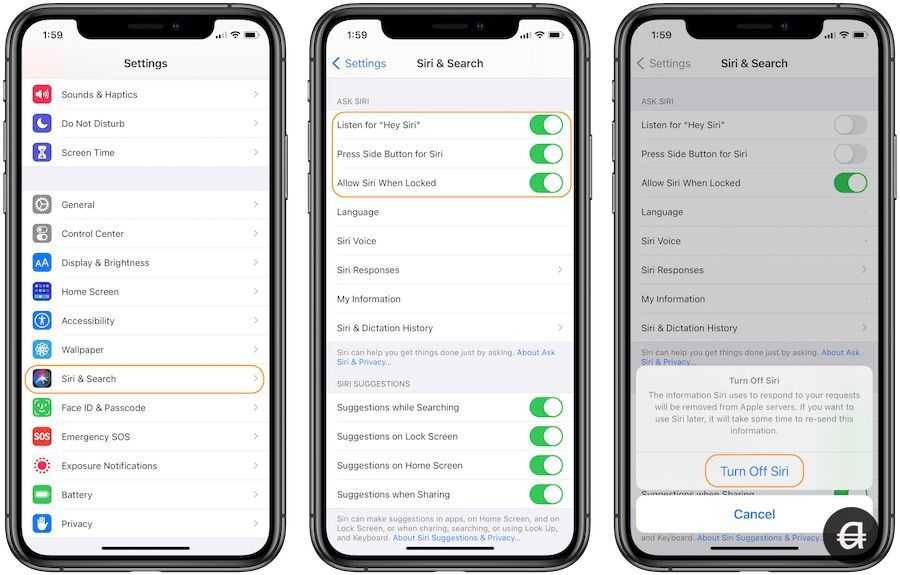 Отключение Siri одинаково для всех устройств, хотя оно очень незначительно варьируется в зависимости от версии iOS или iPadOS. В современных версиях программного обеспечения Siri можно отключить следующим образом: