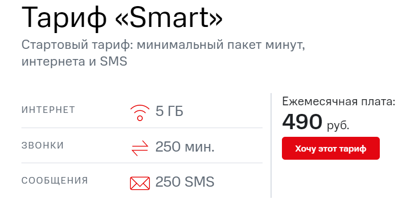 Это самый дешевый вариант. За 490 руб/мес дается:
