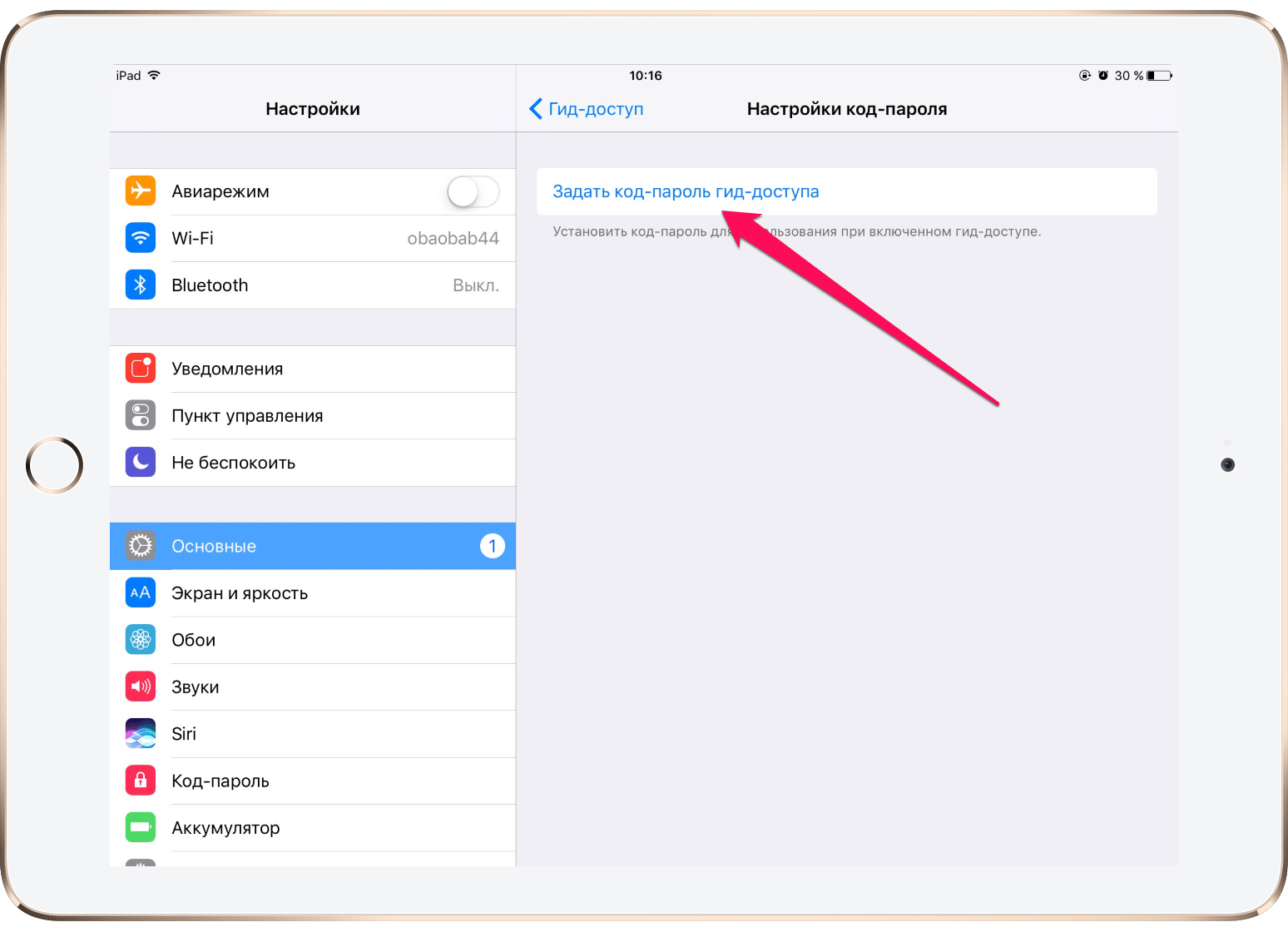 Если вы не задавали использования TouchID для отключения гид-доступа, нужно выполнить следующее: