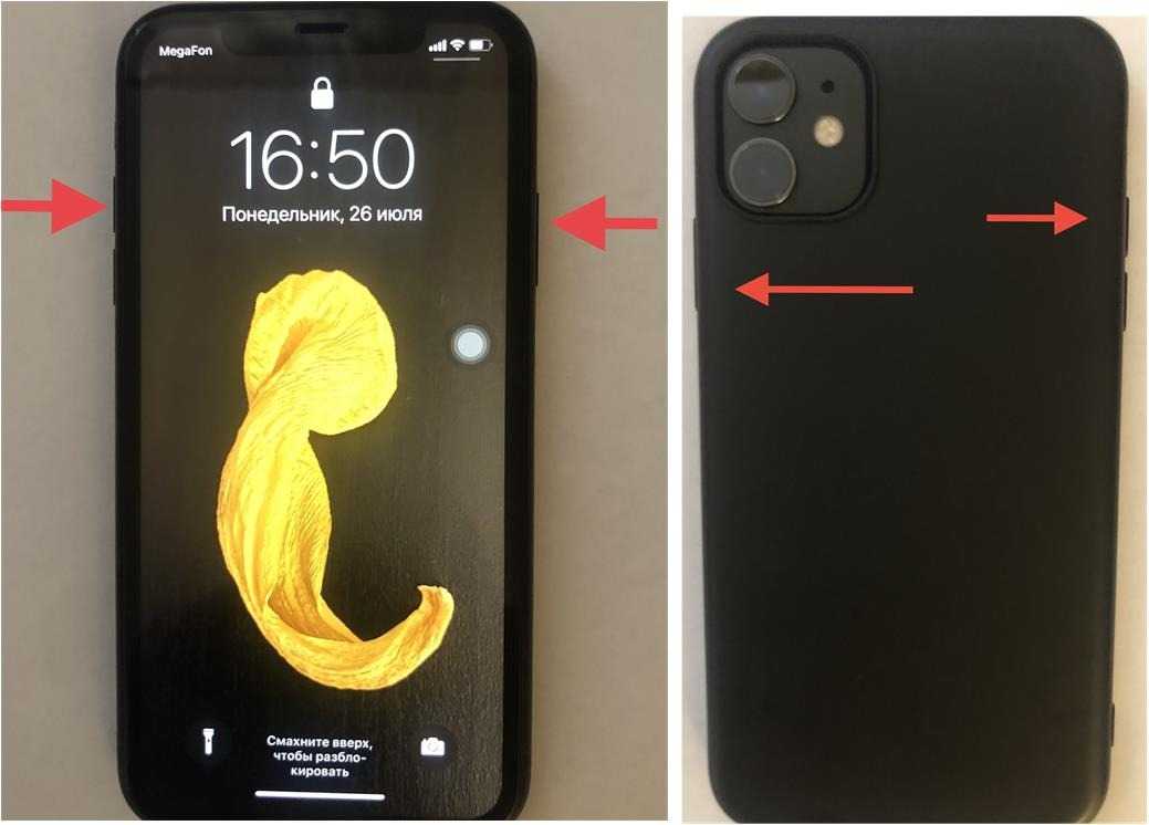 - одновременно быстро нажать кнопку увеличения громкости, находящуюся в верхней части левой торцевой стороны корпуса (чуть ниже механического флажка отключения звука).