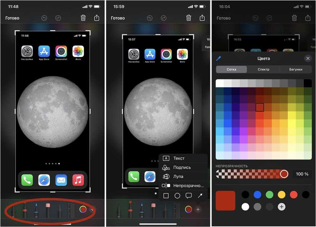 Для редактирования созданных скриншотов можно использовать встроенную опцию iPhone. Для этого нужно кликнуть по изображению скриншота пока оно ещё находится в нижнем левом углу экрана, и операционная система предложит вам все существующие возможности редактирования: