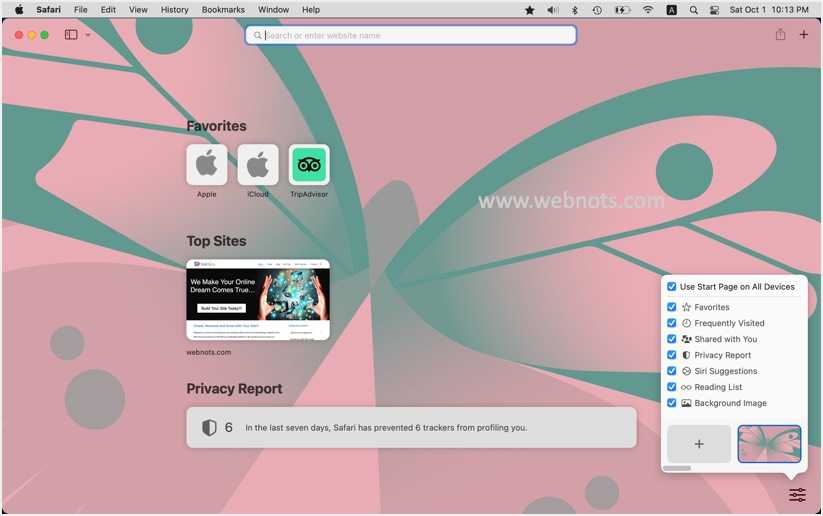 В отличие от Chrome, существует несколько расширений Safari для настройки страницы новой вкладки. Однако мы не нашли ни одного бесплатного расширения или темы, которые могли бы изменить фон браузера Safari на Mac.