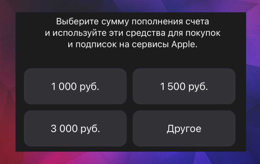 В некоторых странах и регионах функция «Пополнить счет Apple ID» может называться по-другому.