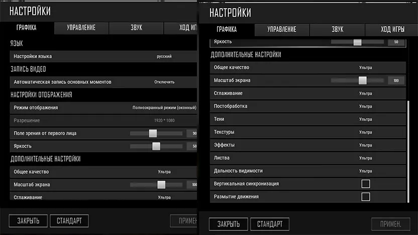 - Эффекты — влияет на красоту взрывов, попадания пуль и так далее.