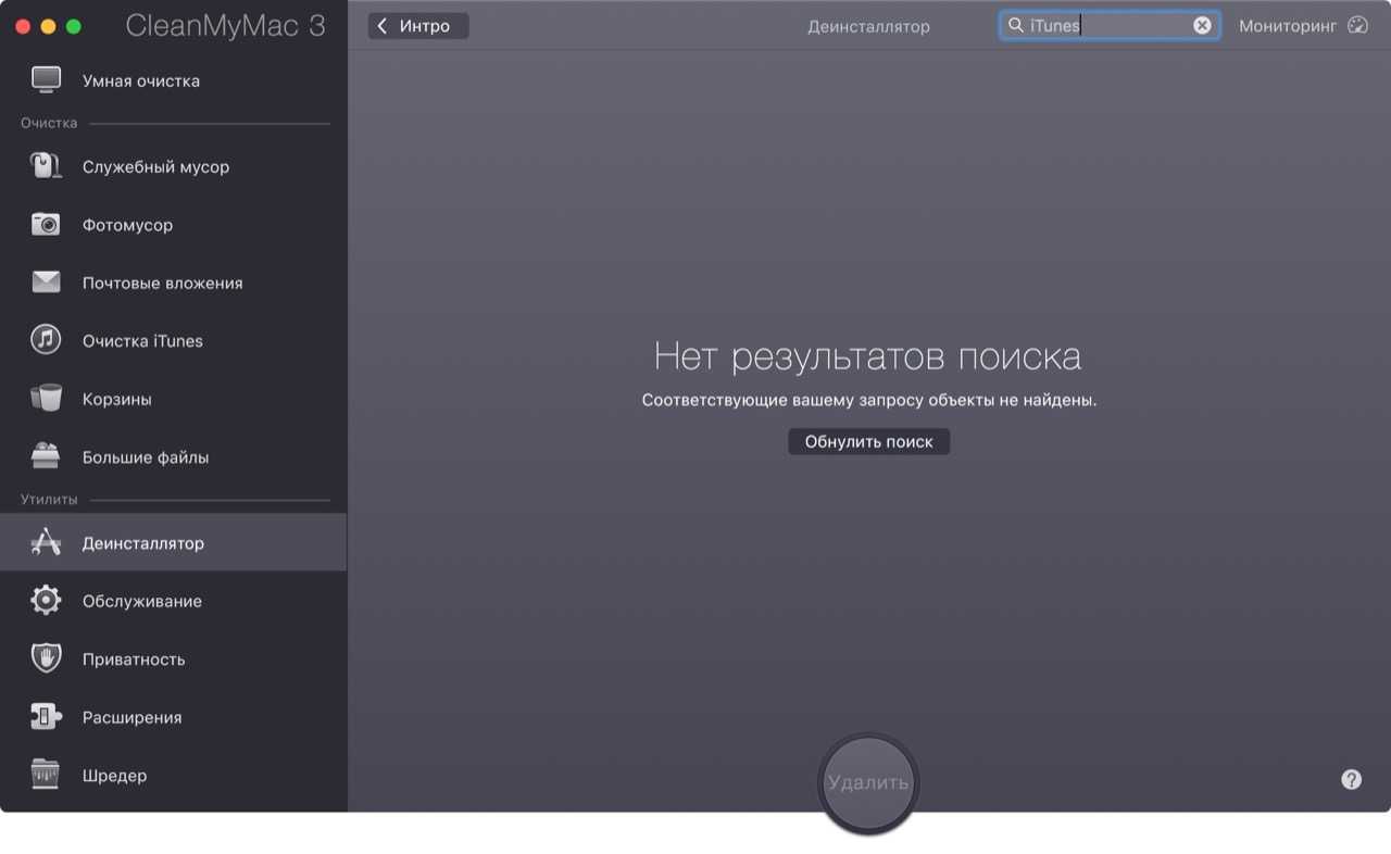 Все попытки удалить iTunes из папки «Программы» в OS X завершаются сообщением: «Объект «iTunes» не может быть изменен или удален, так как он необходим OS X». А деинсталлятор в и вовсе «не видит» программу.