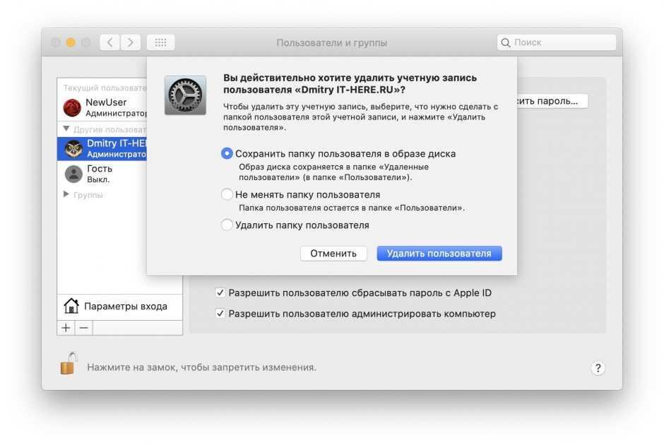Удаление учетной записи без сброса компьютера — самый быстрый и простой способ, но использовать его рекомендуется только в том случае, если у вас нет времени на переустановку macOS. Удаляя свою учетную запись, вы не очищаете системные файлы.