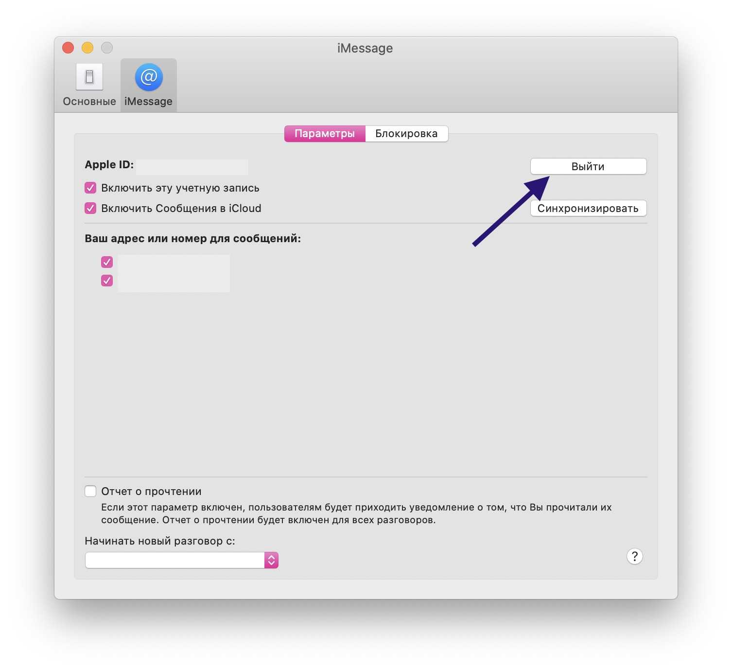 - Выйдите из iMessage. Откройте приложение Сообщения — Настройки и выйдите из своей учетной записи.