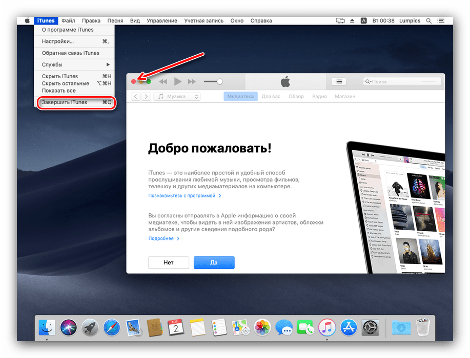 Обычно программу можно завершить тремя способами: нажать на кнопку с крестиком в её окне, использовать сочетание клавиш Command+Q либо воспользоваться меню «Файл» – «Завершить».