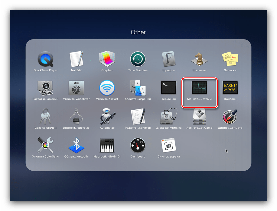 - Чтобы открыть «Мониторинг системы», в панели Dock кликните по иконке Launchpad.