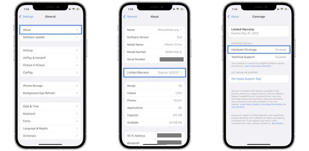 На все iPhone предоставляется ограниченная гарантия сроком на 1 год с момента активации. Чтобы проверить, защищен ли ваш iPhone, выполните следующие действия: