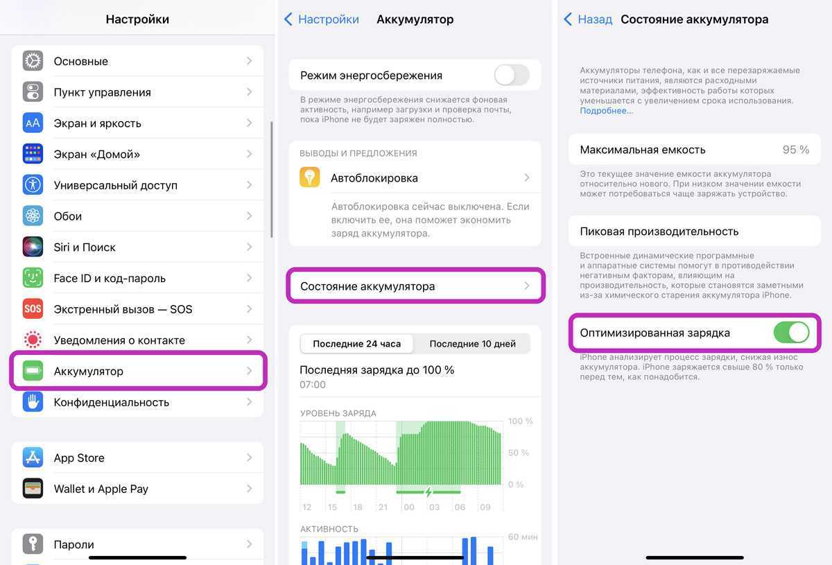 Оптимизированная зарядка аккумулятора в iOS 13 и более поздних версиях предназначена для уменьшения износа аккумулятора и увеличения срока его службы за счет сокращения времени, которое ваш iPhone проводит полностью заряженным.