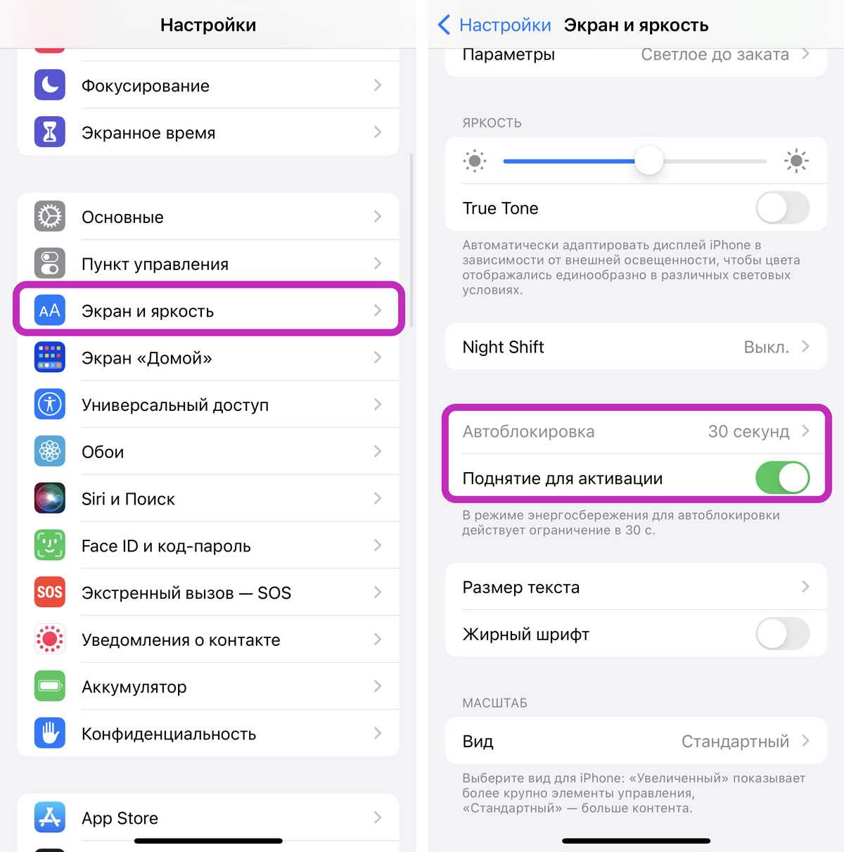 На время работы аккумулятора это окажет положительное воздействие. Откройте Настройки – Экран и яркость