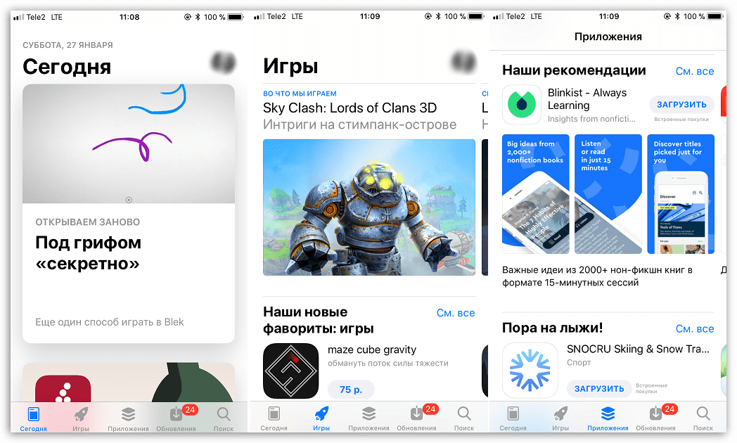 В данном случае подделку определить довольно просто: загрузка приложений на оригинальном Айфон происходит из магазина App Store, а на подделках из Google Play Маркет (или альтернативного магазина приложений). App Store для iOS 11 должен выглядеть следующим образом: