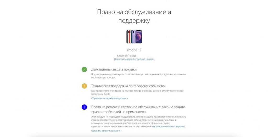 На сайте Apple можно проверить право на сервисное обслуживание данной модели. Увидеть, распространяется ли на смартфон гарантия.