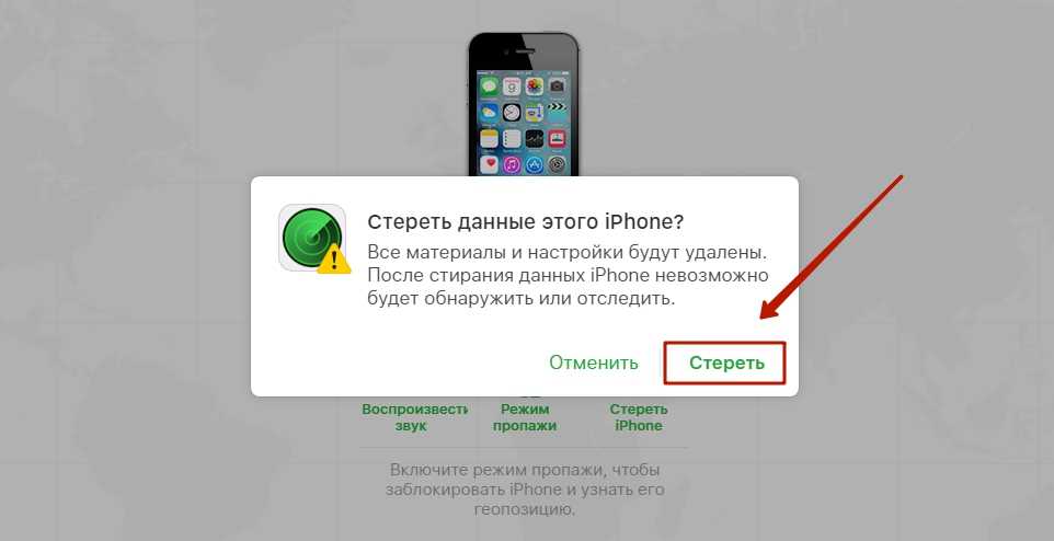 - В окне подтверждения еще раз нажмите кнопку «Стереть».