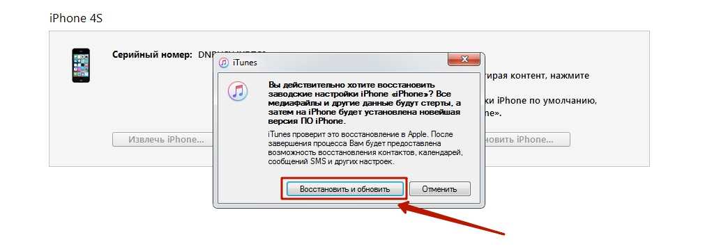 Если предыдущие методы для разблокировки iPhone 4, 4s, 4с, 5, 5s, 5с, СЕ и прочих моделей, не дал положительного результата, можно выполнить восстановление системы при помощи установки новой версии прошивки. Чтобы это сделать, придерживайтесь инструкции: