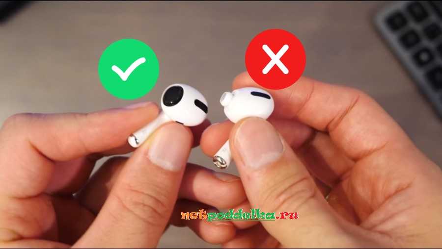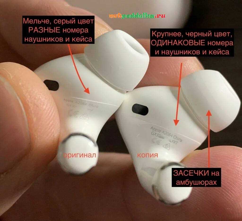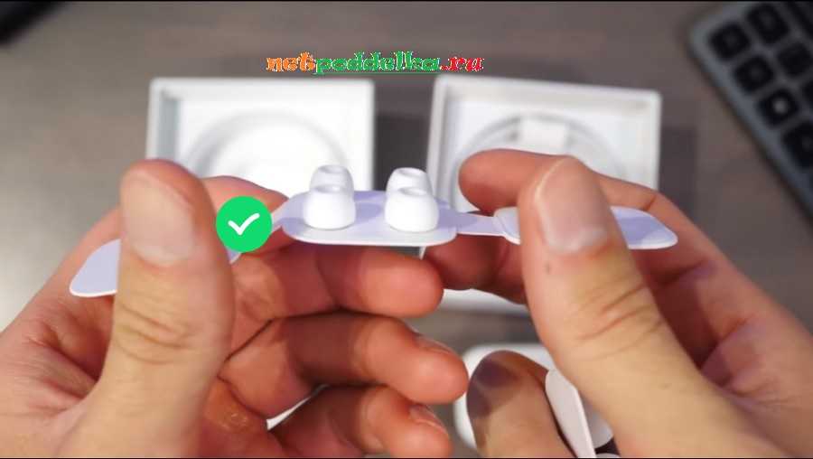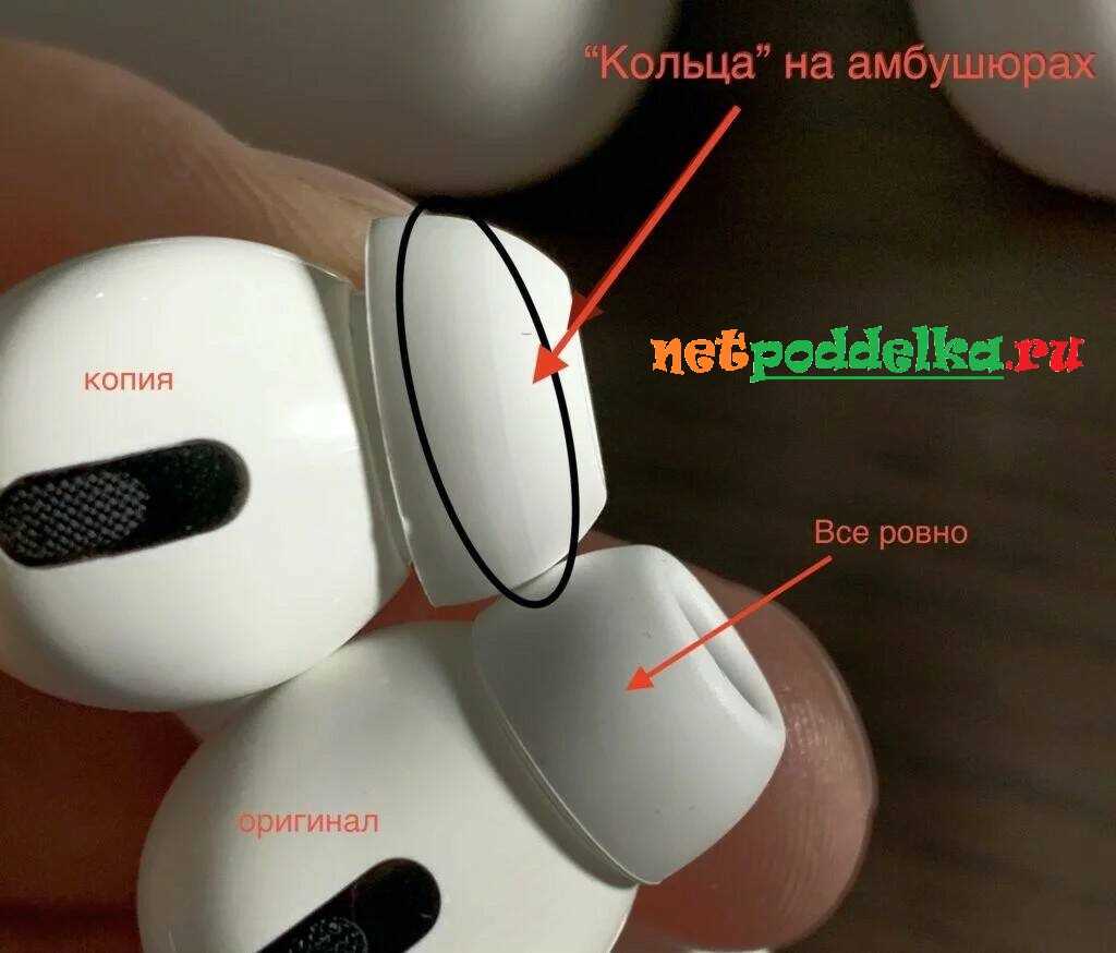Осмотр амбушюр также поможет в том как проверить подлинность AirPods Pro. У Apple они приятны для ушей и не имеют никаких выступающих стыков. Амбушюры у копий изготавливаются по более дешевой технологии из низкосортной резины.
