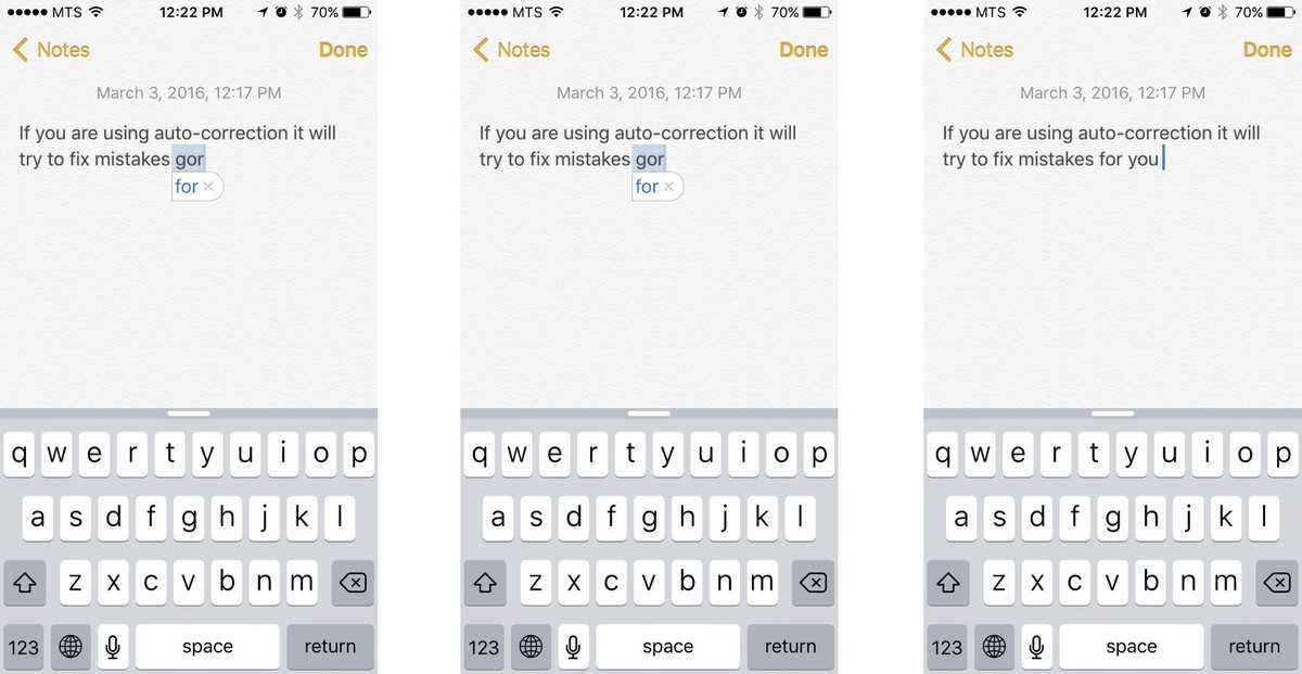 Функция автоматического исправления ошибок (функция автокоррекции) устроена немного сложнее, чем простое подчеркивание слов с ошибками. Благодаря этой функции ошибки исправляются во время того, как Вы печатаете текст, а не после этого. Здорово, не правда ли?