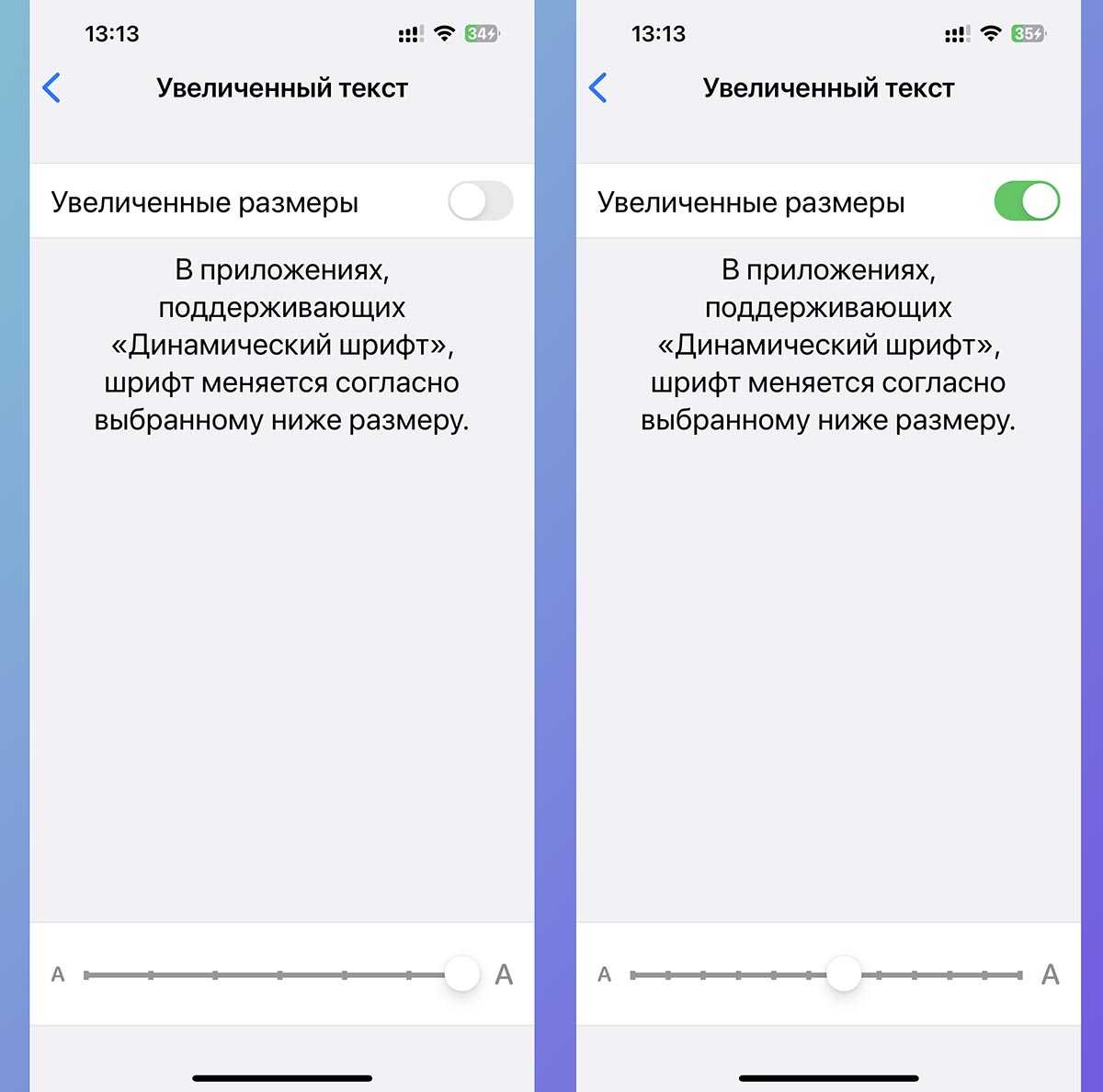 Активируйте тумблер Увеличенные размеры.