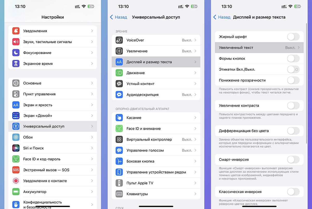 Перейдите в раздел Настройки — Универсальный доступ — Дисплей и размер текста.