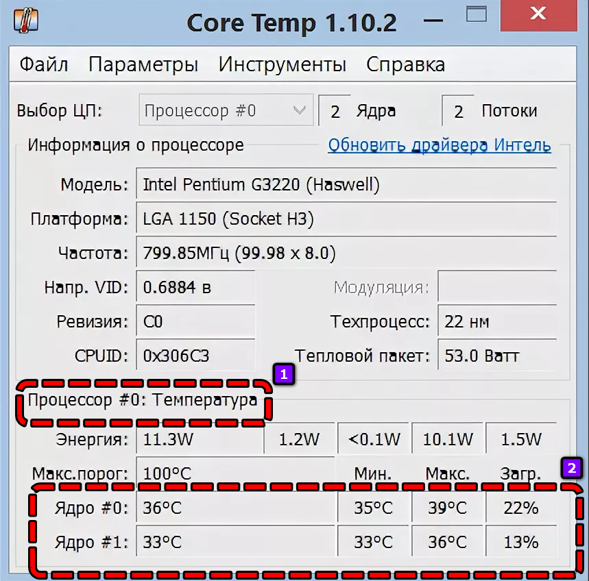 Как посмотреть температуру ПК на windows 10 в «Core temp»