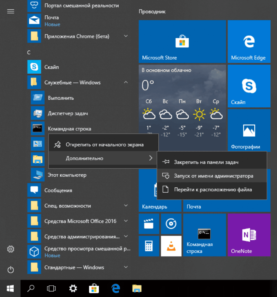 Запустите Командную строку с административными правами, щелкнув правой кнопкой мыши на кнопке «Пуск» и выбрав необходимый пункт меню. Нажмите кнопку «Да», получив запрос от UAC. Введите следующую команду: