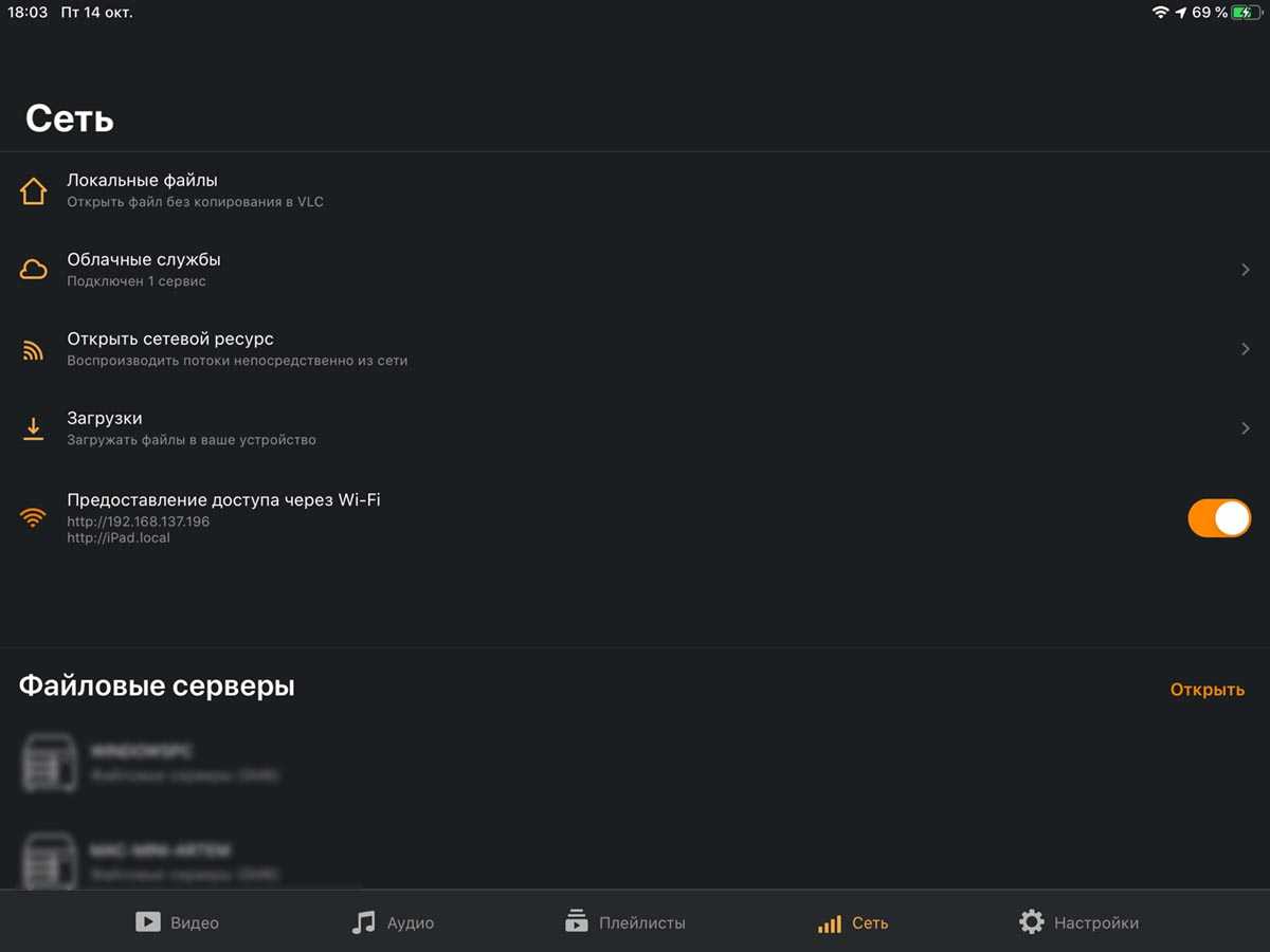 ◉ Активируйте опцию Предоставление доступа через Wi-Fi и откройте указанный адрес в любом браузере на компьютере.