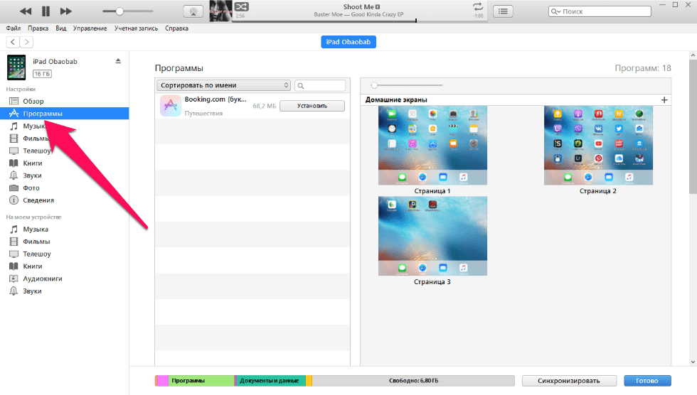 Шаг 3. На экране управления iPhone в iTunes перейдите в раздел «Программы