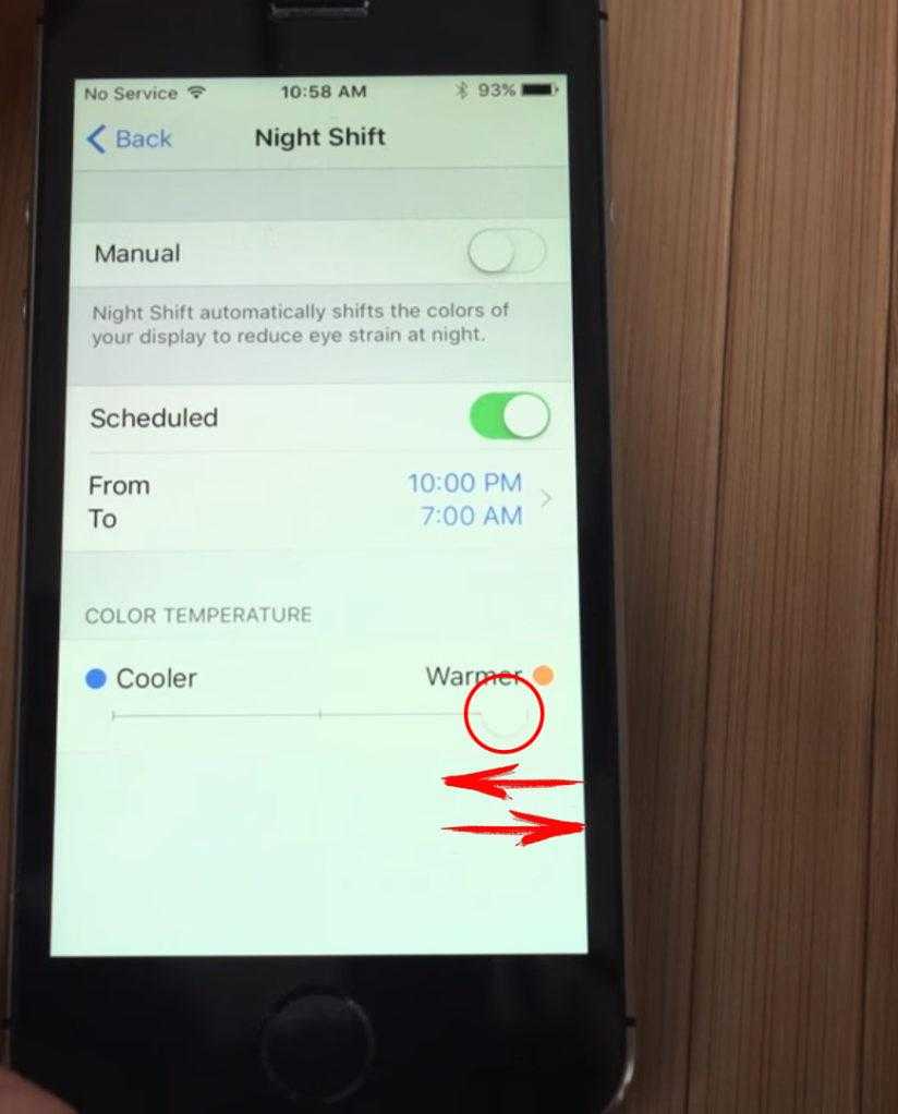 Как установить цветовой диапазон ночного режима на Айфоне?