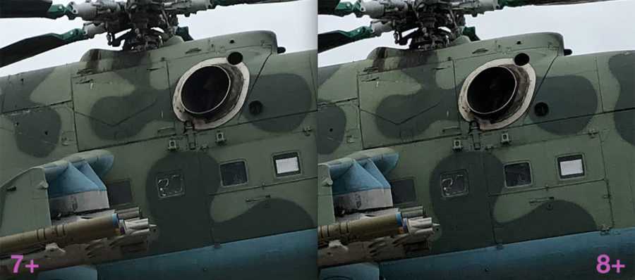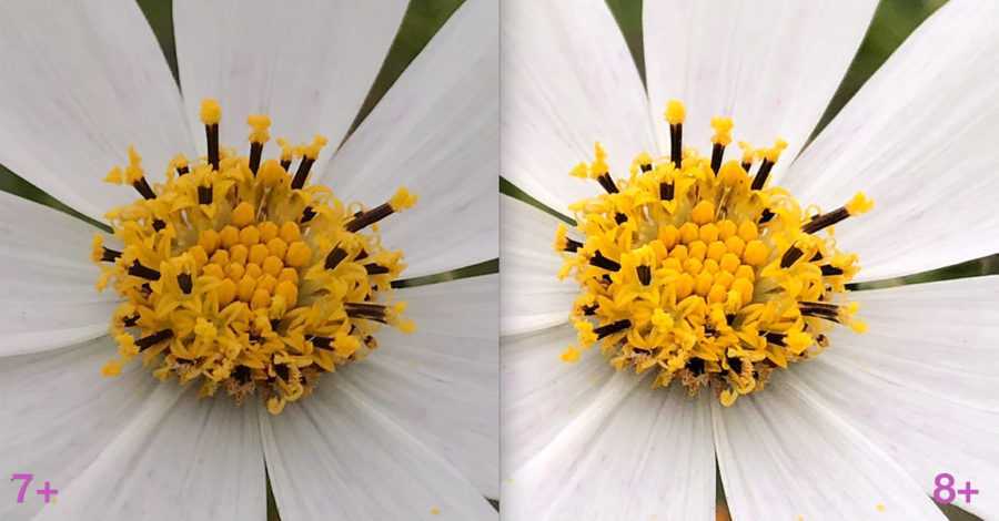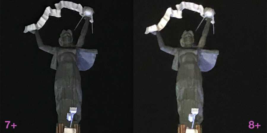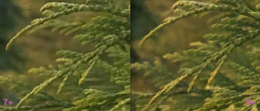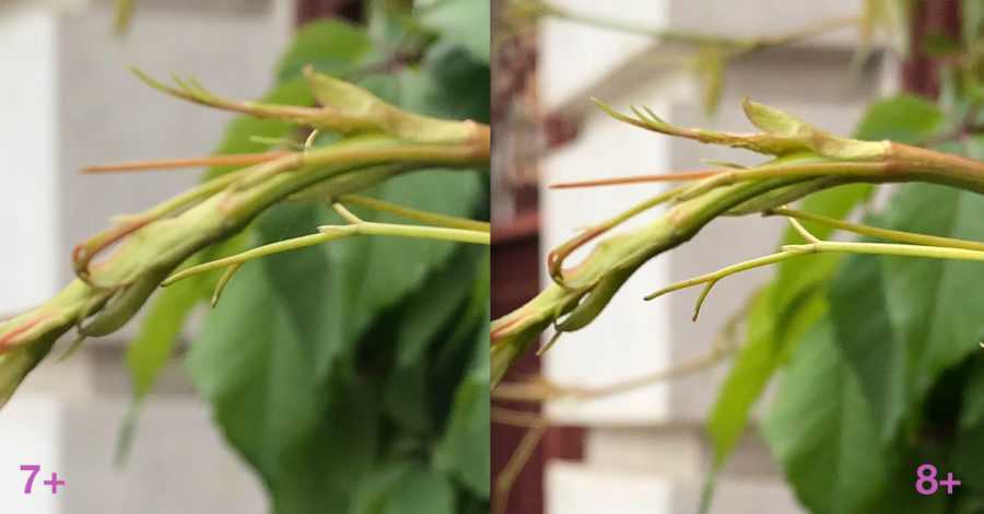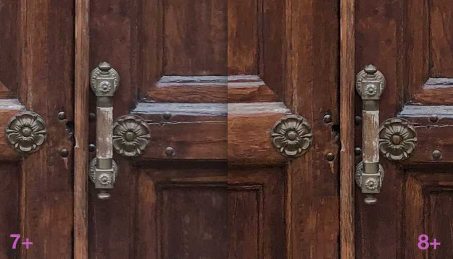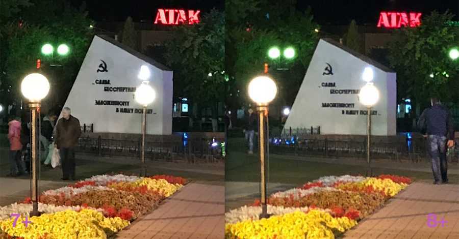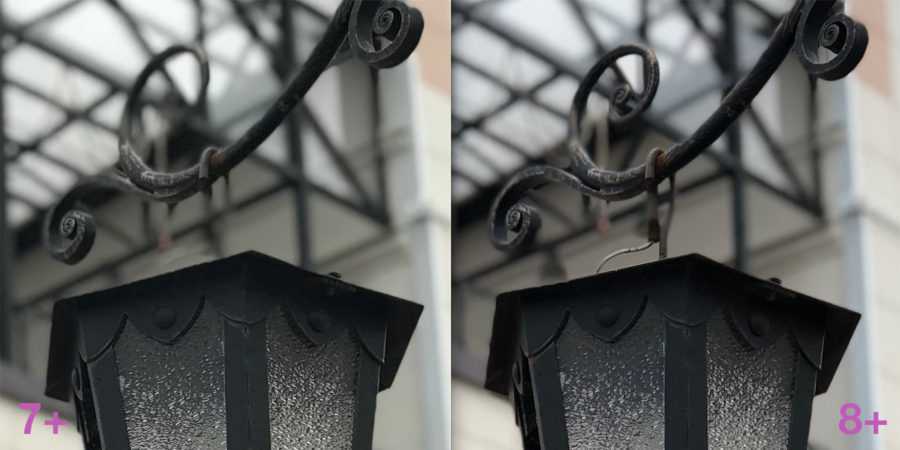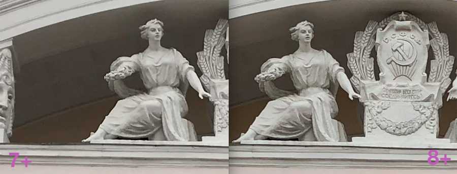 Но и тут всё оказалось без сюрпризов. Камера 8 Plus «шумит» больше, а кроме того, у неё чуть-чуть выше детализация — всё это вместе даёт визуально более привлекательную картинку.