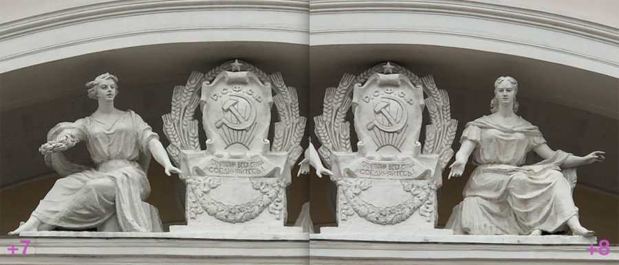 Однако алгоритмы всё равно далеки от совершенства. На одном снимке (7+) у статуи криво размыло карман.