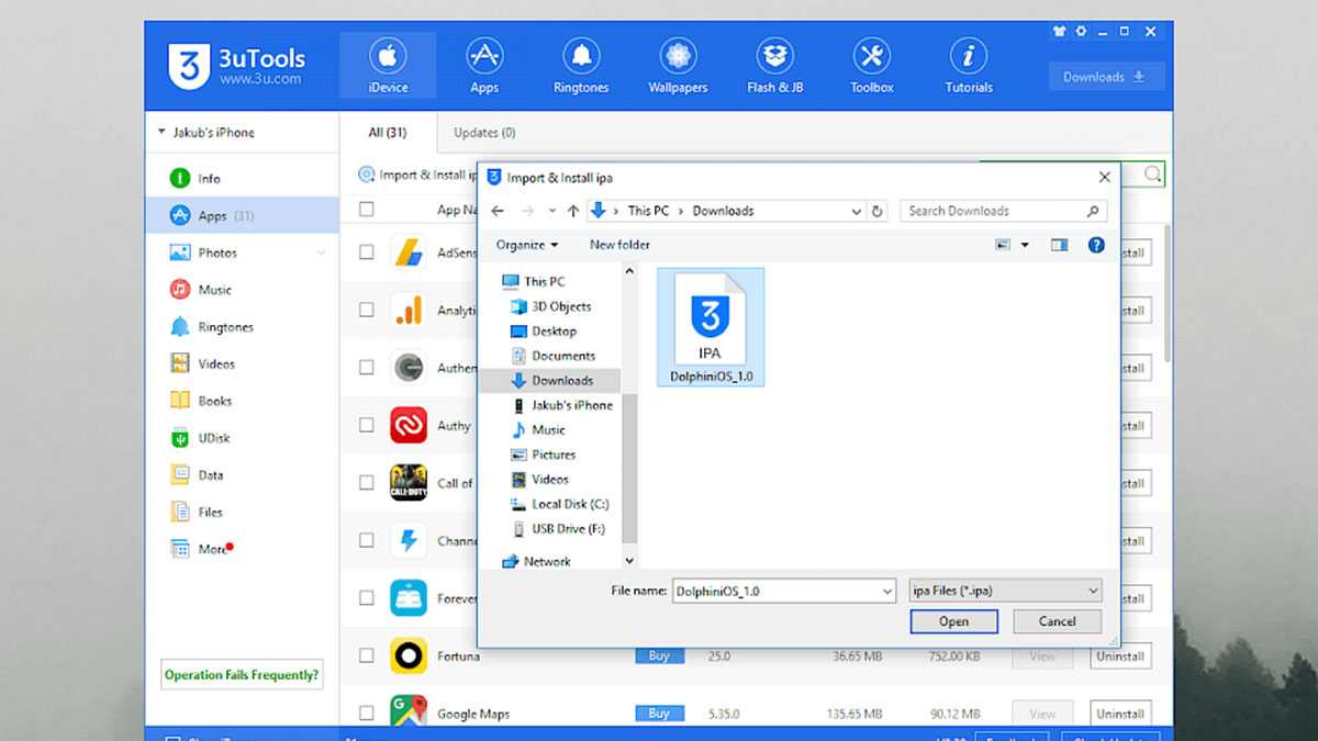 ◈ Откройте раздел ToolBox – Sign IPA, потребуется указать загруженный из сети *.IPA файл и установить его на смартфон.