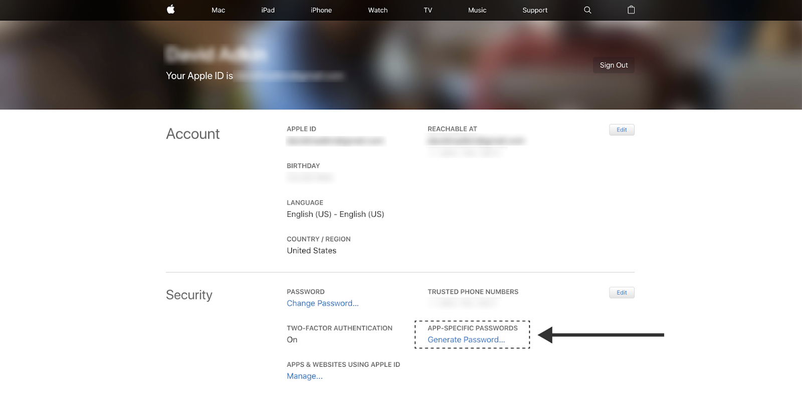2. В разделе Security найдите подзаголовок App-specific passwords и нажмите Generate Password.