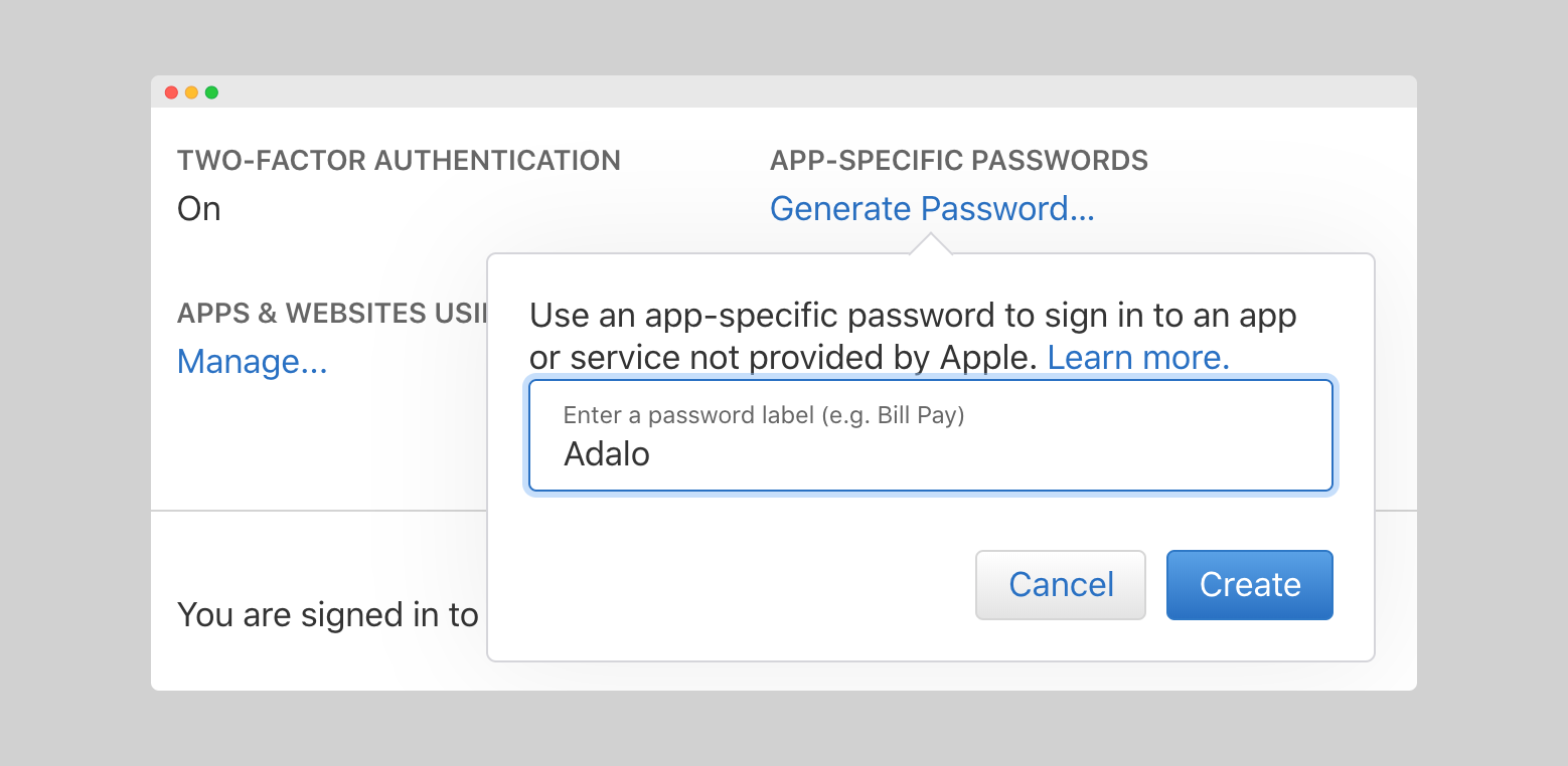 Чтобы добавить приложение Adalo в App Store, понадобится подключить конструктор к вашему Apple ID. Для этого нужно создать пароль для приложения (app-specific password). Он позволит загрузить сборку на проверку в TestFlight.