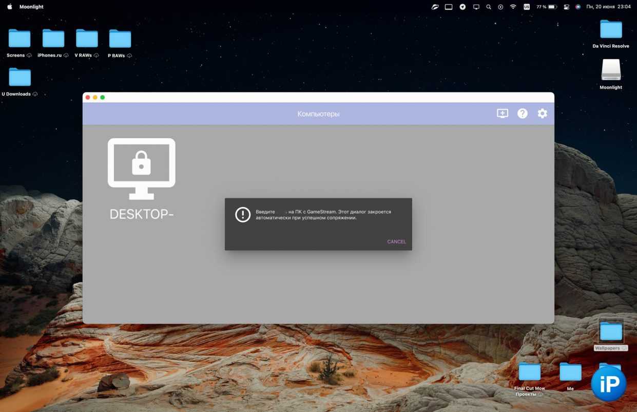 3. Открыть Moonlight на MacBook, нажать на иконку своего ПК, увидеть код верификации